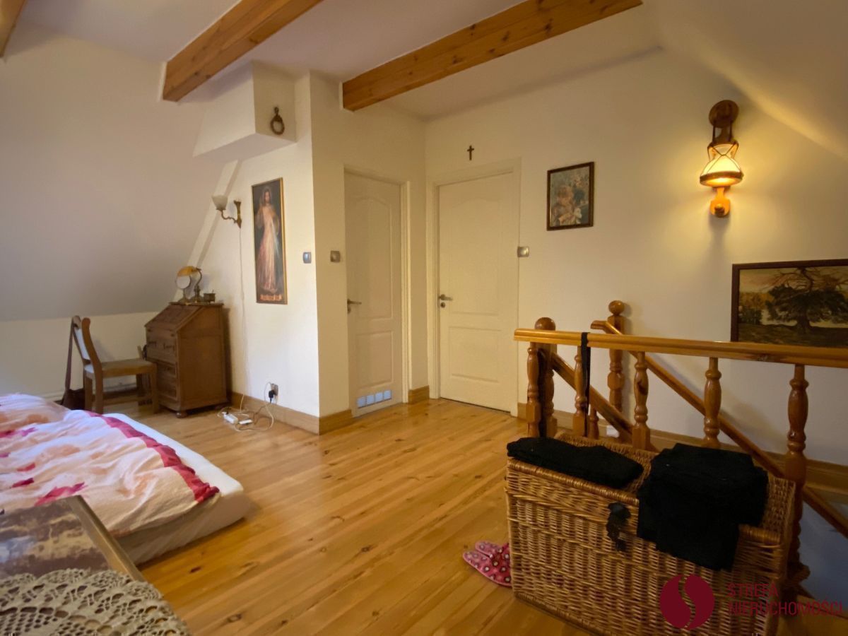 Pierwszy, urokliwy dom w stylu wiejskim, o powierzchni użytkowej około 130 m², to wolnostojący, parterowy budynek z poddaszem, wybudowany w 1995 roku. Od frontu znajduje się pokój dzienny z kominkiem, kuchnia z pomieszczeniem gospodarczym i wyjściem na taras, gabinet, pokój gościnny oraz łazienka z wanną. Na piętrze umieszczono bawialnię, dużą sypialnię z wyjściem na balkon i kolejną łazienkę. Budynek jest ocieplony, z dachówką ceramiczną, wyposażony w wszystkie media, a światłowód dostępny jest w ulicy. Okna plastikowe zabezpieczone kratami, podłogi drewniane, a ogrzewanie zapewnia nowoczesny piec gazowy Viessmann (2015) i kominek z nawiewem.